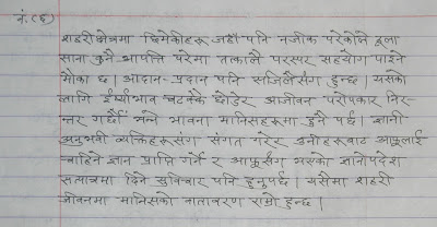 प्रस्तुत छ 'मानवीय जीवनमा पानीको प्रयोग, अन्तिम संस्कार, र फोहोर ब्यबस्थापनको क्षेत्रमा मानिसको दैनिक धार्मिक अभ्यास' का बिषयमा दिपना शर्माले राख्नु भएको प्रश्नहरुको वंहाले दिनु भएको आफ्नै हस्तलिखित उत्तर